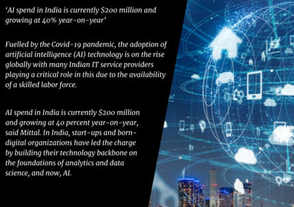 ‘AI spend in India is currently $200 million and growing at 40% year-on-year’ Fuelled by the Covid-19 pandemic, the... 16 Feb Pandemic accelerated global firms to adopt AI tech | AIML | 0 ‘AI spend in India is currently $200 million and growing at 40% year-on-year’ Fuelled by the Covid-19 pandemic, the...