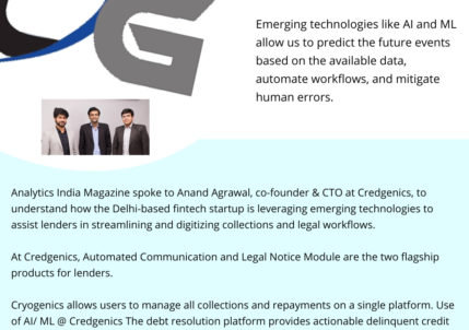 21 Feb 2021 | ANALYTICS INDIA MAG Emerging technologies like AI and ML allow us to predict future events... 22 Feb How This Delhi-Based Startup Uses AI To Streamline Legal Workflows Of Fintech Firms | AIML | 0 21 Feb 2021 | ANALYTICS INDIA MAG Emerging technologies like AI and ML allow us to predict future events...