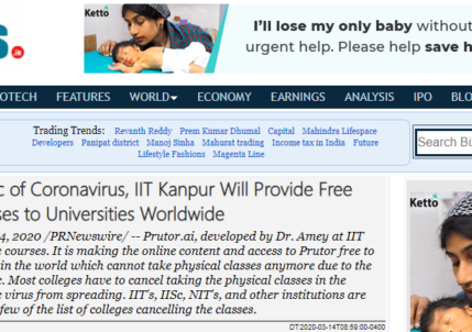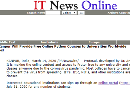 KANPUR, India, March 14, 2020 /PRNewswire/ -- Prutor.ai, developed by Dr. Amey at IIT Kanpur, offers many online courses. It is making...