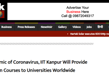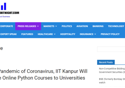 कोरोनावायरस महामारी के दौरान, IIT Kanpur विश्वस्तर पर विश्वविद्यालयों को मुफ्त ऑनलाइन Python कोर्स उपलब्ध कराएगा कानपुर भारत, 17 मार्च, 2020 /PRNewswire/ --...