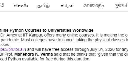 During the Pandemic of Coronavirus, IIT Kanpur Will Provide Free Online Python Courses to Universities Worldwide KANPUR, India, March 14, 2020 /PRNewswire/...