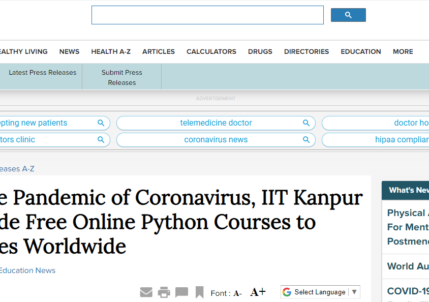 कोरोनावायरस महामारी के दौरान, IIT Kanpur विश्वस्तर पर विश्वविद्यालयों को मुफ्त ऑनलाइन Python कोर्स उपलब्ध कराएगा कानपुर भारत, 17 मार्च, 2020 /PRNewswire/ --...