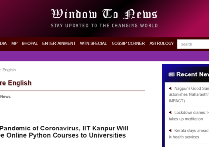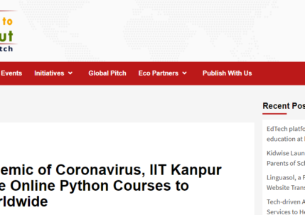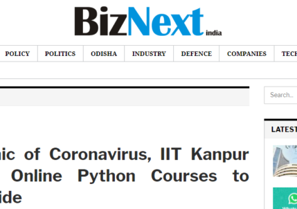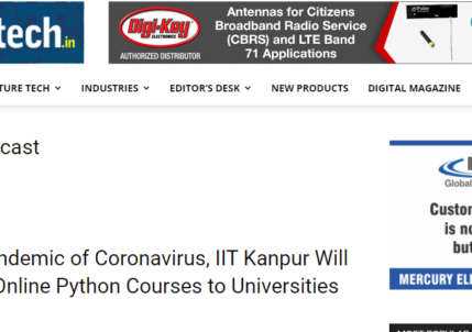 During the Pandemic of Coronavirus, IIT Kanpur Will Provide Free Online Python Courses to Universities Worldwide KANPUR, India, March...
