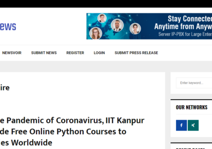 During the Pandemic of Coronavirus, IIT Kanpur Will Provide Free Online Python Courses to Universities Worldwide KANPUR, India, March...