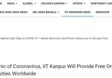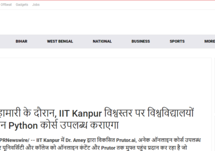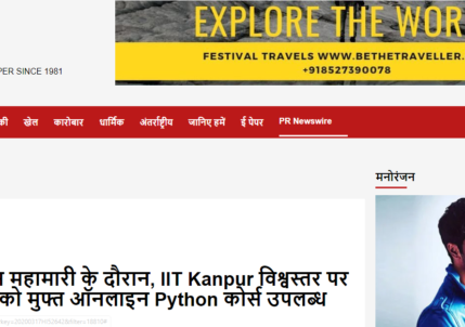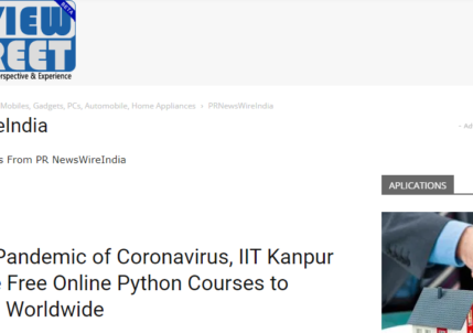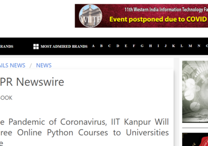 During the Pandemic of Coronavirus, IIT Kanpur Will Provide Free Online Python Courses to Universities Worldwide KANPUR, India, March...