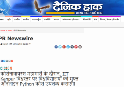 कोरोनावायरस महामारी के दौरान, IIT Kanpur विश्वस्तर पर विश्वविद्यालयों को मुफ्त ऑनलाइन Python कोर्स उपलब्ध कराएगा कानपुर भारत, 17...