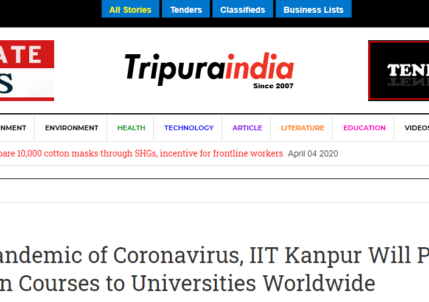 कोरोनावायरस महामारी के दौरान, IIT Kanpur विश्वस्तर पर विश्वविद्यालयों को मुफ्त ऑनलाइन Python कोर्स उपलब्ध कराएगा कानपुर भारत, 17 मार्च, 2020 /PRNewswire/ --...