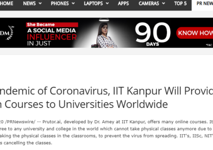 KANPUR, India, March 14, 2020 /PRNewswire/ -- Prutor.ai, developed by Dr. Amey at IIT Kanpur, offers many online courses. It is making...