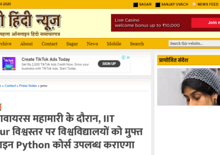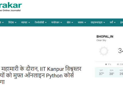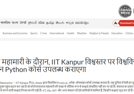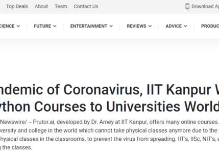 During the Pandemic of Coronavirus, IIT Kanpur Will Provide Free Online Python Courses to Universities Worldwide KANPUR, India, March 14, 2020 /PRNewswire/...