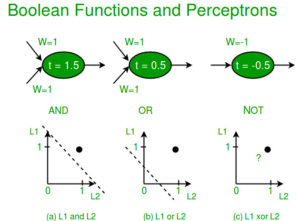 W1,W2,W3….Wn are weight values normalized in the range of either (0,1)or (-1,1) and associated with each input line, Sum is the weighted sum, and is a threshold constant. The function f is a linear step function at the threshold