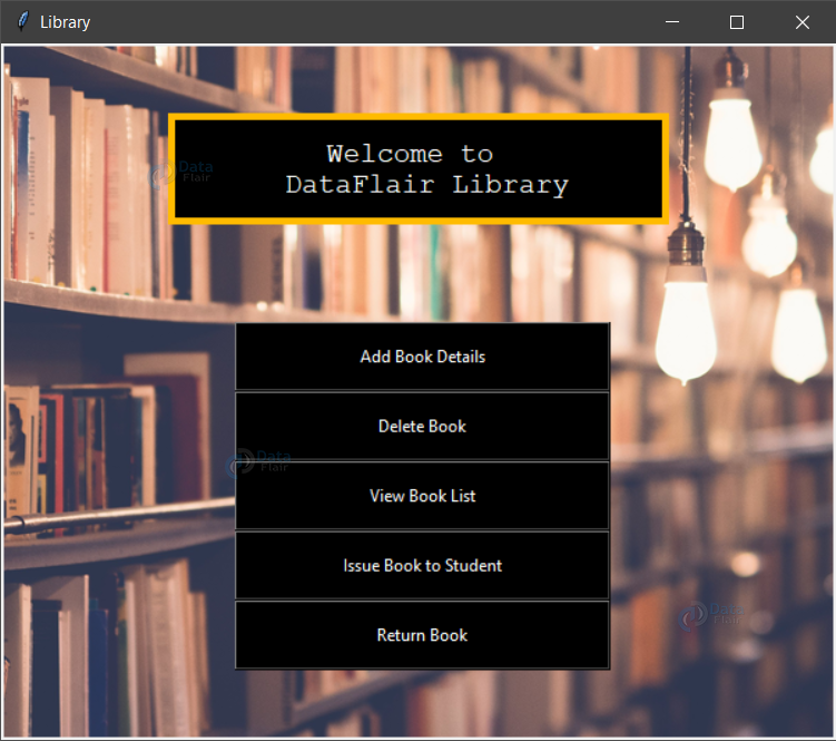 Project idea – The objective of library management system project is to develop a real-time library project with Tkinter. This project provides functionalities like add book, issue book, return book, view book, delete book, etc.