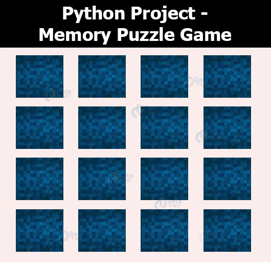 Project idea – Memory puzzle is a great game to enhance your concentration power and improve your memory. At the starting of the game, the shapes are displayed for a second and then they are covered. One by one user selects the tile to uncover and when two similar shapes are uncovered the score gets increased. This way we have to uncover all the pairs of shapes.