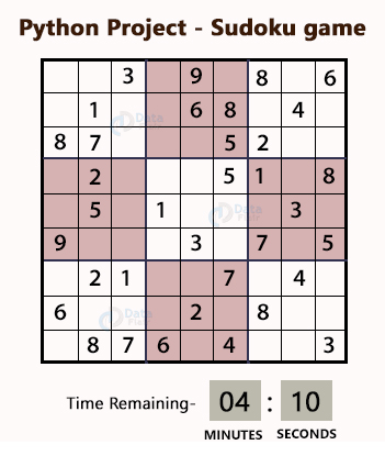 Project idea – In the sudoku game we have a 9×9 grid and it contains 3×3 grids having numbers from 1 to 9. It’s a puzzle game and you have to find the missing numbers in empty places. Implement a timer in the game and also provide a way to display hint to the user.